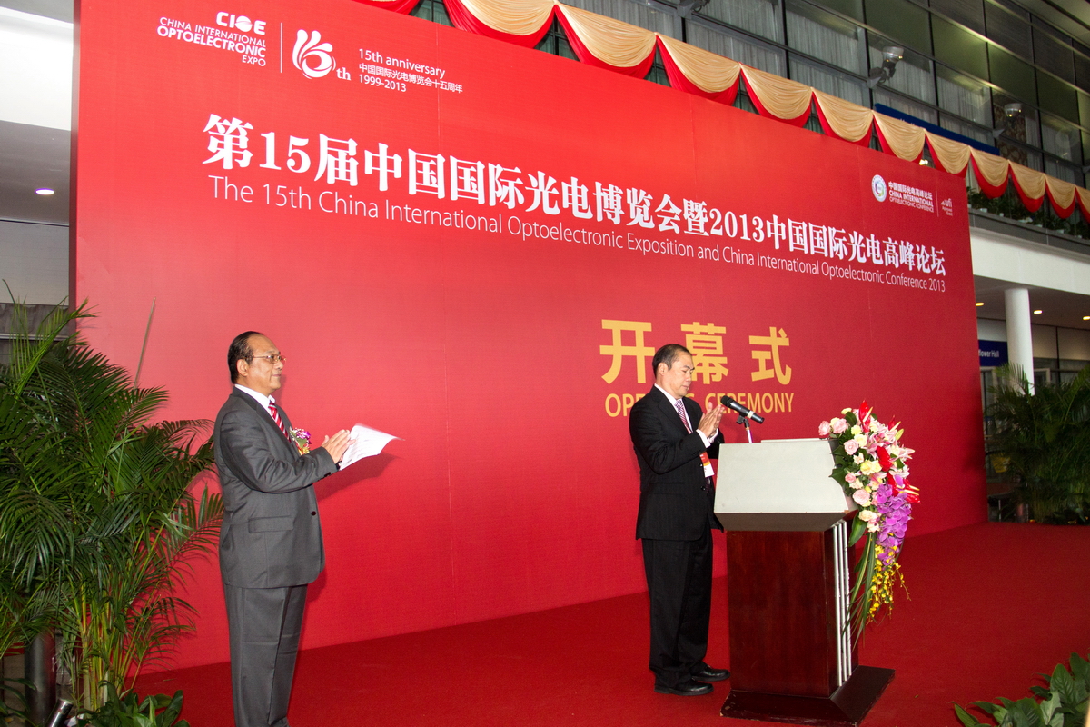 9月4日,在深圳召開的“第十五屆中國國際光電博覽會暨2013中國國際光電高峰論壇”上,集團屬下的華策光通信科技有限公司推出的“基于位置服務(wù)的白光通信技術(shù)” 受到與會國內(nèi)外同行及專家、學者的高度關(guān)注和一致好評。圖為開幕式現(xiàn)場。
