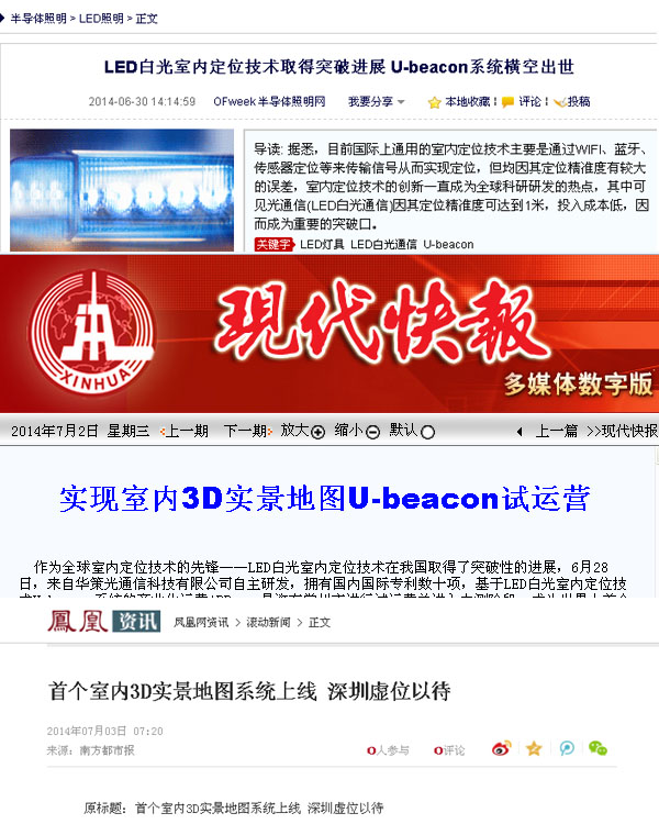 6月28日,來自華策光通信科技有限公司自主研發,擁有國內國際專利數十項,基于LED白光室內定位技術U-beacon系統的商業化運營APP--“易逛”,在江蘇常州市進行試運營并進入內測階段,成為世界上首個實現商業化運營并實現室內3D實景地圖的光定位技術。據悉,該產品在內測階段結束后將率先進入廣深等一線城市,全面鋪開。該消息一經報道,立刻引起廣泛關注。包括網易新聞、新浪財經、鳳凰資訊、南方都市報、深圳晚報等數十家媒體爭相報道。