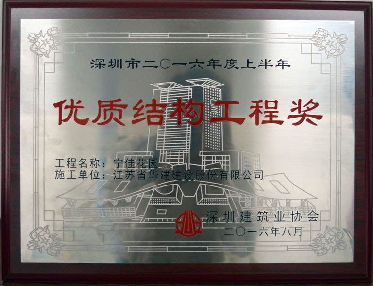 深圳寧佳花園項(xiàng)目(推廣名:華策中心城一期)繼今年五月份榮獲“深圳市2016年度上半年安全生產(chǎn)與文明施工優(yōu)良工地”的殊榮之后,憑借嚴(yán)格的品質(zhì)把控、過硬的工程質(zhì)量,再獲“深圳市2016年度上半年優(yōu)質(zhì)結(jié)構(gòu)工程獎(jiǎng)”。此獎(jiǎng)項(xiàng)是依據(jù)《深圳市建筑工程優(yōu)質(zhì)獎(jiǎng)評選工作辦法》,由專家對企業(yè)申報(bào)項(xiàng)目進(jìn)行嚴(yán)格檢查及驗(yàn)收,并經(jīng)深圳建筑業(yè)協(xié)會工程質(zhì)量工作委員會審定后頒發(fā)。評審結(jié)果顯示,龍崗區(qū)內(nèi),寧佳花園與萬科天譽(yù)花園二期、佳兆業(yè)中央廣場三期等項(xiàng)目一并榮獲該殊榮。