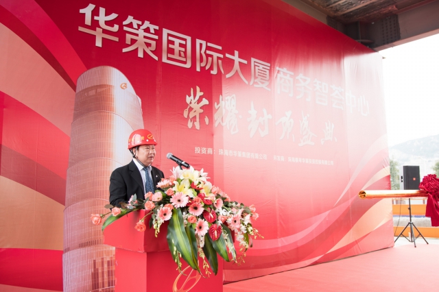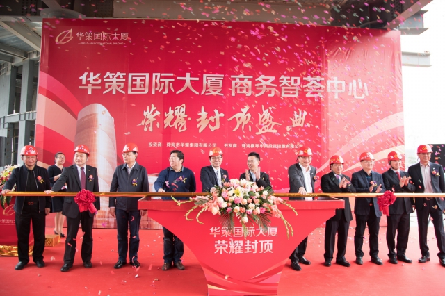 2017年1月9日上午10時30分,華策國際大廈東塔舉辦封頂儀式,橫琴新區黨委副書記葉真、橫琴新區建設環保局局長劉晨光、華策集團董事局主席楊峰、副主席楊智雄、總裁余道群、行政總監趙日云、營銷策劃中心主任姚政等領導出席了封頂儀式。華策國際大廈整體分為東塔和西塔兩部分,西塔已于2016年11月8日封頂,隨著東塔的順利封頂,華策國際大廈全面封頂,并將于2017年部分投入使用,2018年底全部投入使用。