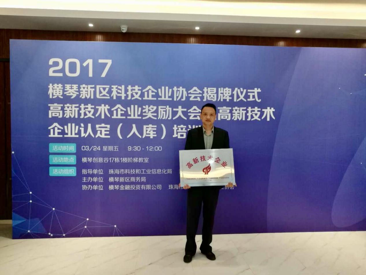 珠海橫琴華策光通信科技有限公司副總經理李聯接收“高企”認定
