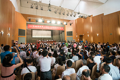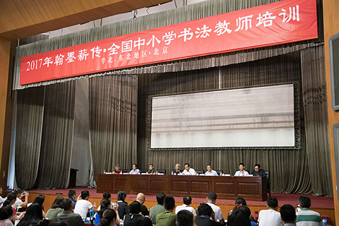 7月5日上午9時,“翰墨薪傳·全國中小學書法教師培訓”啟動儀式在京舉行。教育部原副部長、教育書畫協(xié)會會長張保慶,全國政協(xié)常委、中國書法家協(xié)會主席蘇士澍,教育部基礎教育司副巡視員王岱,中國教育學會常務副會長兼秘書長楊念魯,中國書法家協(xié)會分黨組副書記、秘書長鄭曉華,中國教育發(fā)展基金會秘書長、教育書畫協(xié)會副會長張中原,教育書畫協(xié)會秘書長范水,中國書法家協(xié)會“翰墨薪傳”學術指導小組副主任、華策集團董事局主席楊峰以及來自華北、東北、北京各地的300余名書法教師出席了活動。為弘揚中國傳統(tǒng)文化,傳承中國書法藝術,在2016年底華策集團向中國文學藝術基金會捐贈2500萬元,用于支持“翰墨薪傳·全國中小學書法教師培訓”項目的發(fā)展,在今天的會議上,楊峰主席提出以華策集團的名義創(chuàng)建“翰墨薪傳”教育學院的想法,得到與會領導的高度贊賞,全國政協(xié)常委、中國書法家協(xié)會主席蘇士澍當場表示支持,并安排中國書法家協(xié)會鄭曉華秘書長跟進與對接相關事宜。