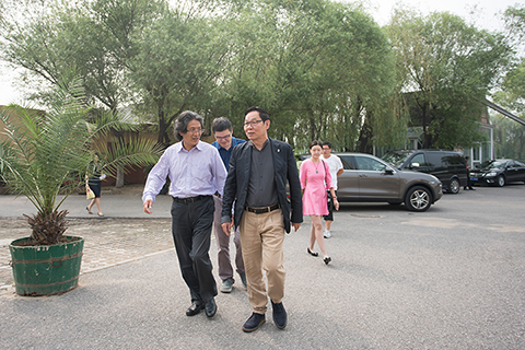 中國書法家協(xié)會“翰墨薪傳”學術指導小組副主任、華策集團董事局主席楊峰(左二)與中國書法家協(xié)會主席蘇士澍(左三)討論“翰墨薪傳”項目未來發(fā)展事宜