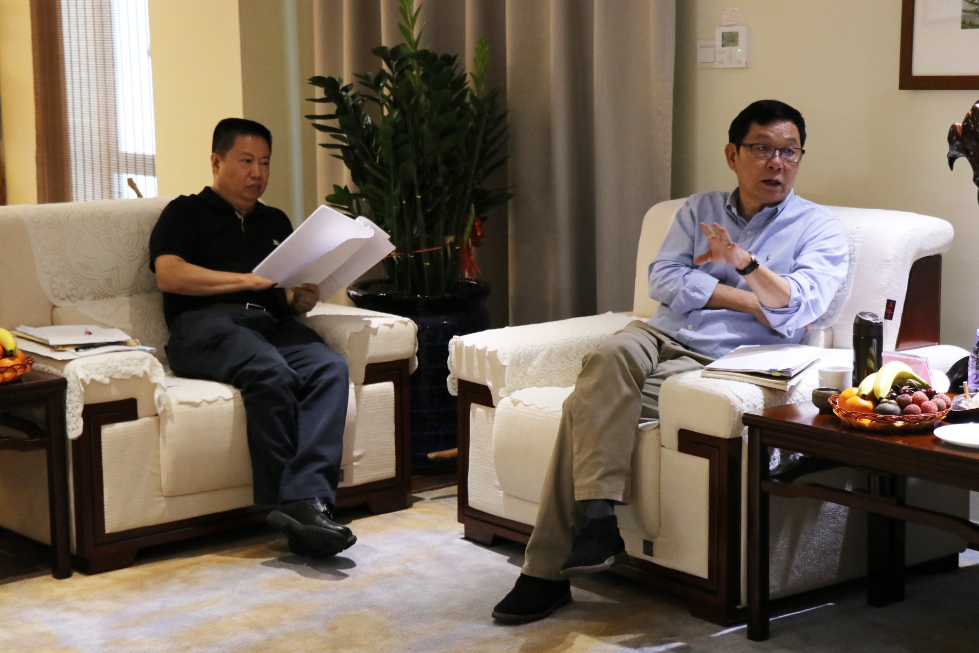 珠海先貿公司董事李朝波(左一)、董事長王文霞(右一)