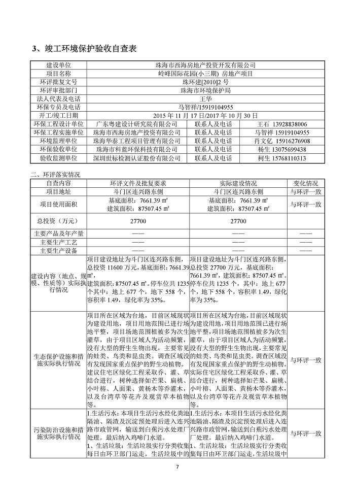 珠海市華策集團有限公司(以下簡稱“華策集團”)下屬子公司—珠海市西海房地產投資有限公司開發的嶺峰國際花園(小三期)房地產項目現已竣工,現將嶺峰國際花園(小三期)項目環保竣工驗收報告內容在華策集團官網進行公示。