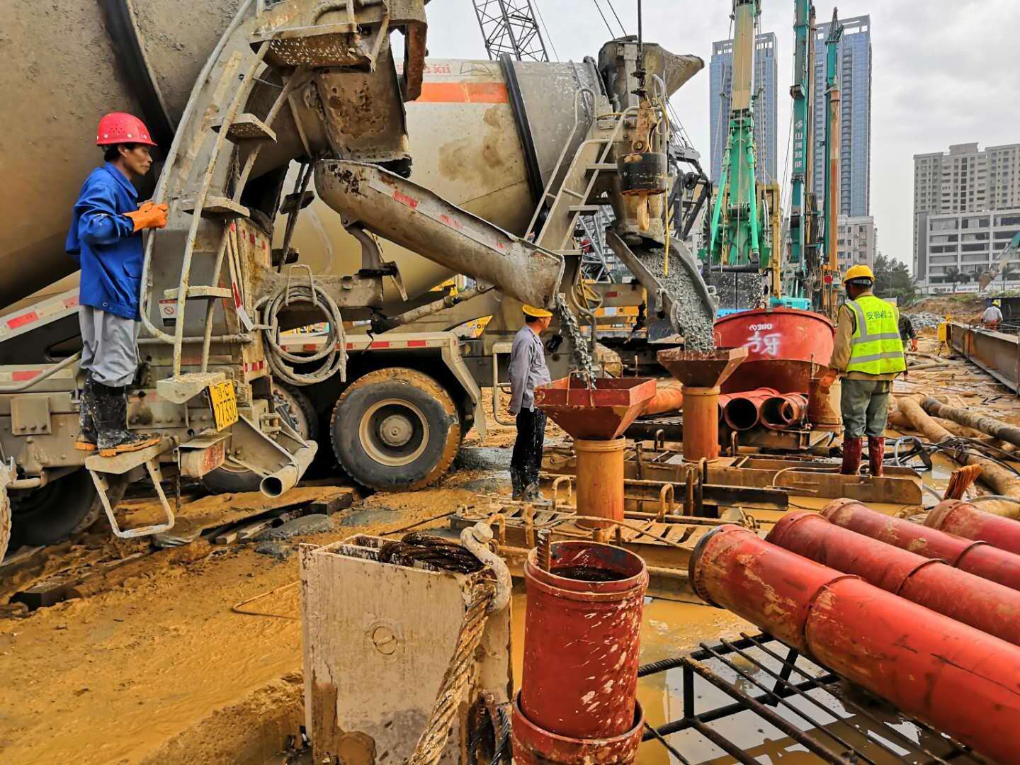 華策·海韻星灣項目地下連續墻混凝土澆筑現場