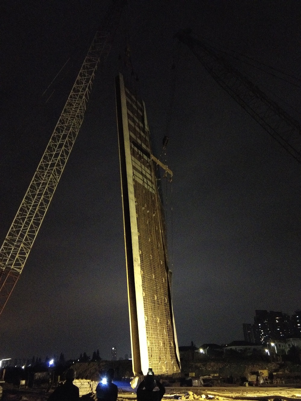 華策·海韻星灣項目地下連續墻鋼筋籠吊裝現場