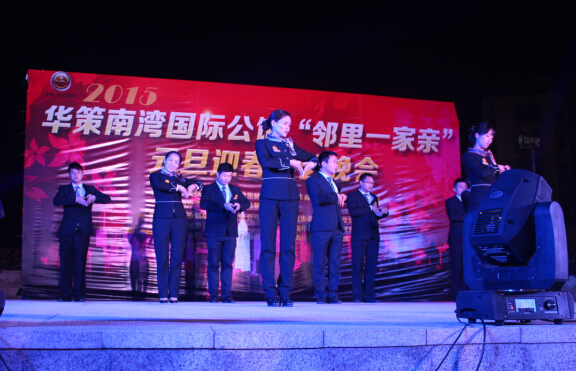2014年12月31日晚,華策南灣國際公館舉辦了“鄰里一家親”——元旦迎春文藝晚會。此次晚會由社區居民及社區工作人員自編自排自演節目,吸引了千余名居民攜老帶幼前來觀看。
