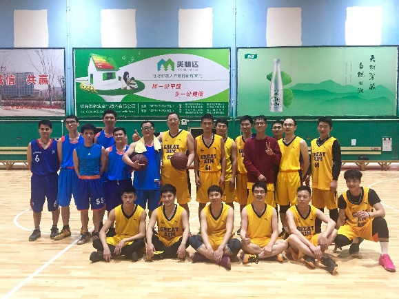 華策籃球隊(duì)(黃隊(duì))與建行籃球隊(duì)(藍(lán)隊(duì))合影留念
