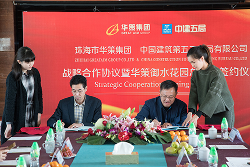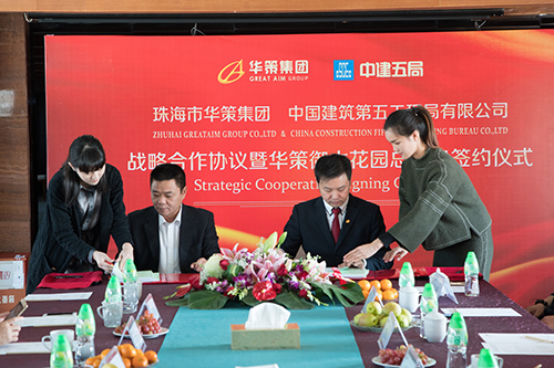 The Signing Ceremony for the Yu Shui Garden Turnkey project of Great Aim& Strategic Cooperation Agreement between Zhuhai Great Aim Group (GreatAim) and the 5th Engineering Bureau of China State Construction