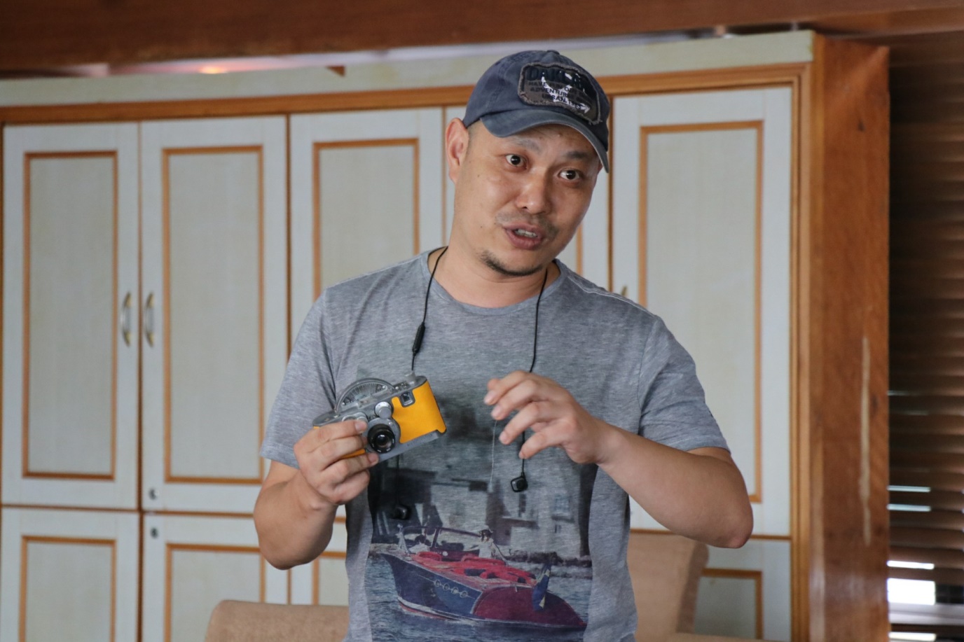 Xing Guofeng is introducingthe features of a camera